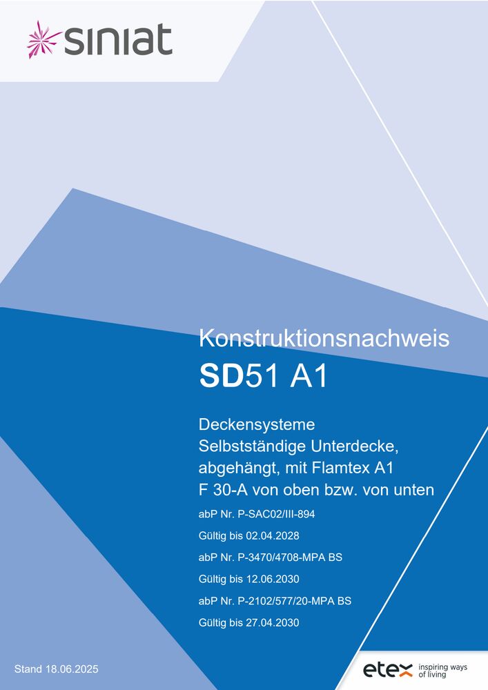 Für auslaufende Prüfzeugnisse wird rechtzeitig eine Verlängerung beantragt. Verzögerungen bei der Bearbeitung durch die Prüfinstitute können jedoch vorkommen. In solchen Fällen wird die Geltungsdauer in der Regel rückdatiert, um eine lückenlose Anwendung der Siniat Systeme zu gewährleisten.