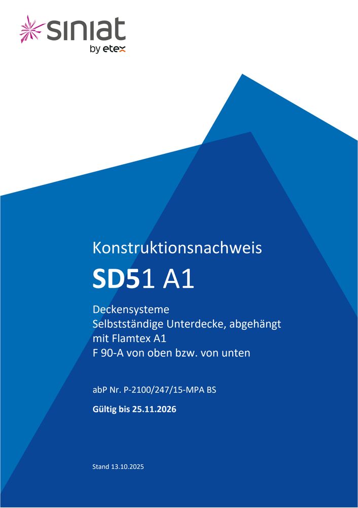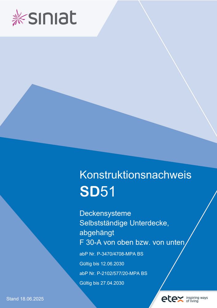 Für auslaufende Prüfzeugnisse wird rechtzeitig eine Verlängerung beantragt. Verzögerungen bei der Bearbeitung durch die Prüfinstitute können jedoch vorkommen. In solchen Fällen wird die Geltungsdauer in der Regel rückdatiert, um eine lückenlose Anwendung der Siniat Systeme zu gewährleisten.