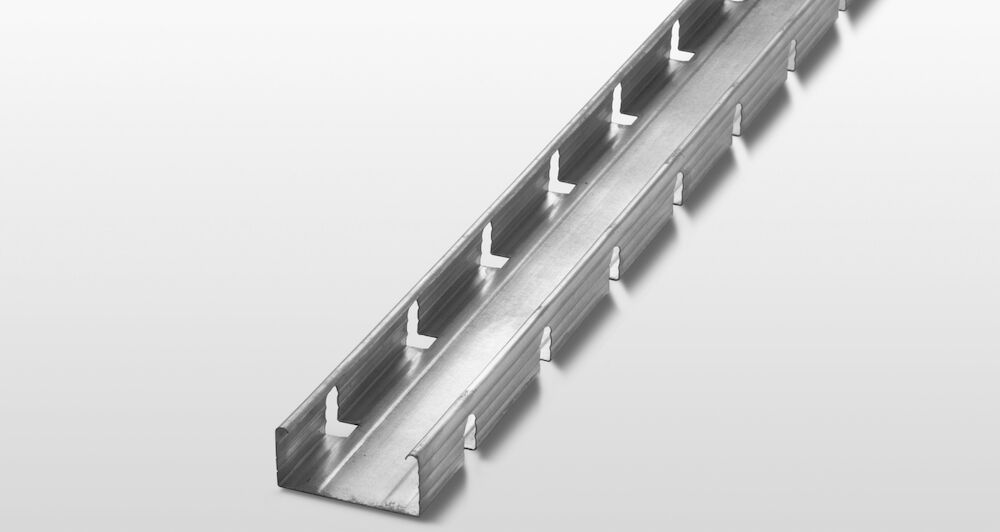 Verzinktes C-Deckenprofil. Flexibles Profilsystem, ideal abgestimmt auf die Gipsplatte LaCurve zur Erstellung gebogener und geschwungener Wand- und Deckenkonstruktionen im Trockenbau; nach DIN EN 14195, DIN 18182-1