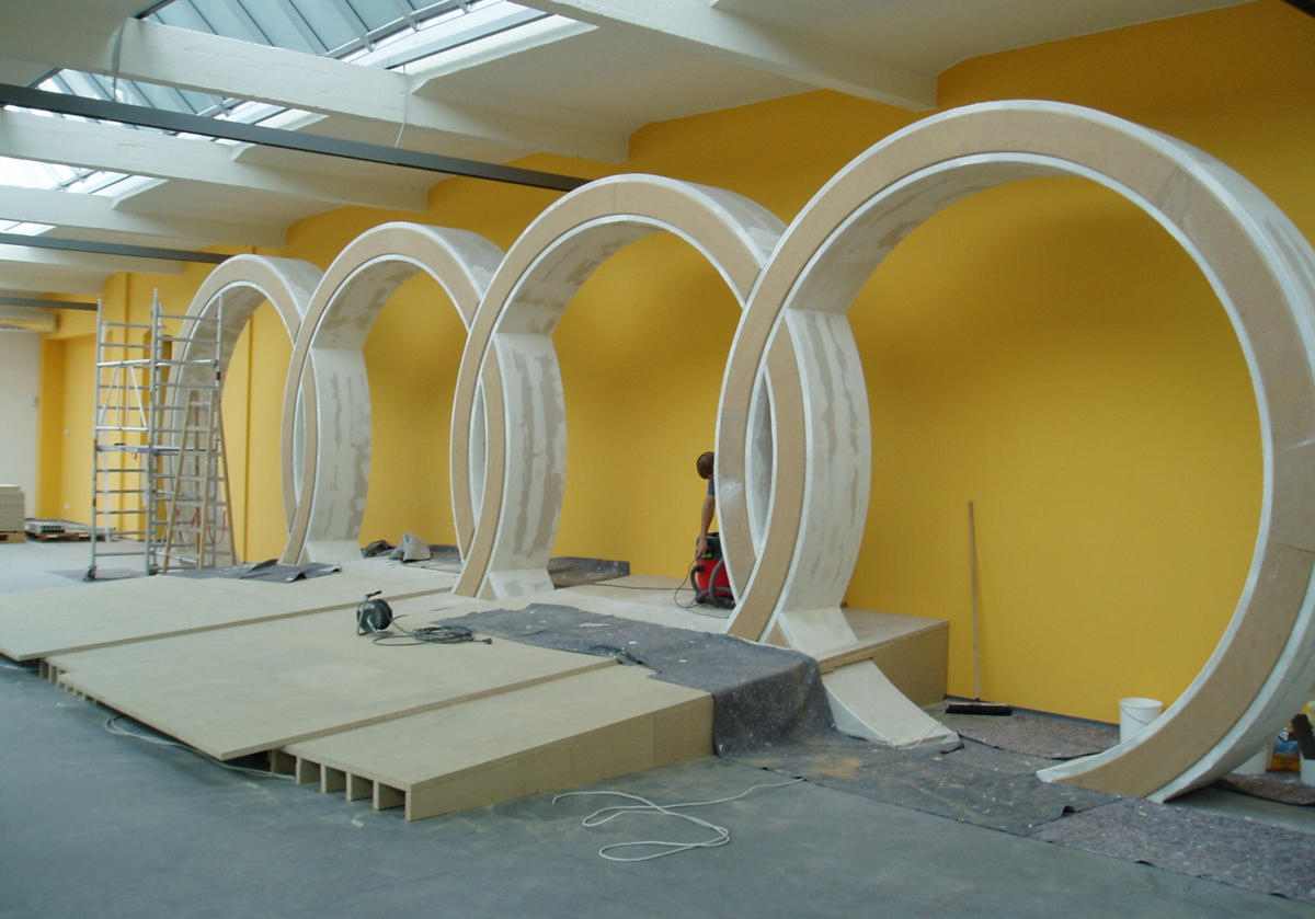 - Ein Wahrzeichen des Museums ist das markant und repräsentativ positionierte, überdimensionale Audi-Logo. Umgesetzt wurden die Ringe mit Siniat Gips-Formteilen. Bemerkenswert ist auch ihre Größe: Sie sind circa 14 Meter lang und 3,80 Meter hoch.