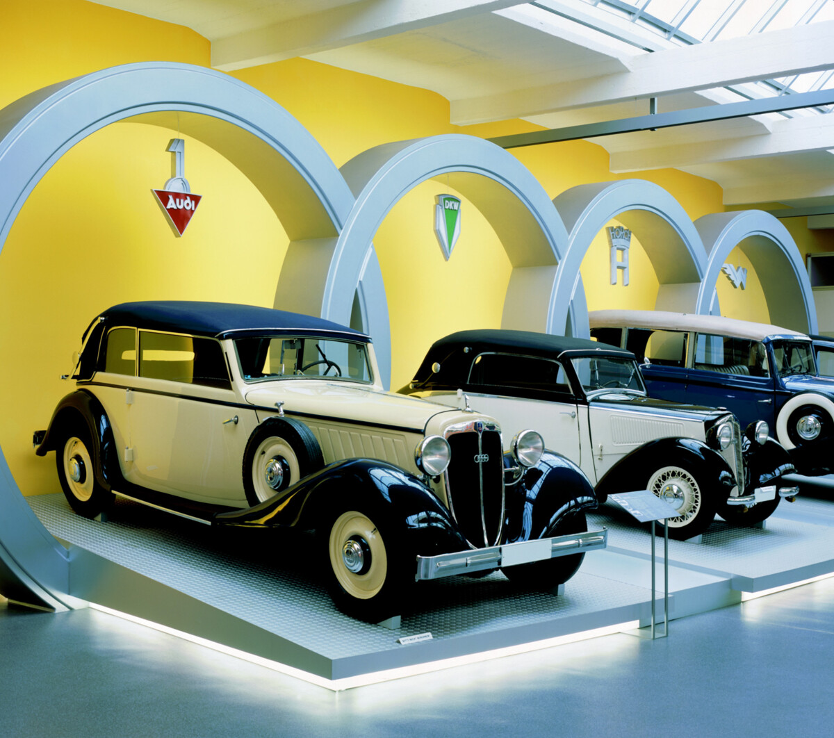 Bei der umfassenden zweijährigen Sanierung war es oberste Priorität, den Charakter der ehemaligen Automobilfabrik zu erhalten bzw. zu rekonstruieren. Deshalb prägt ein historisch orientiertes Erscheinungsbild den schlanken, filigranen Stahlbetonbau. Die Produktionshalle hat man entkernt, um ihren großzügigen Charakter wiederherzustellen. Technische Installationen treten in den Hintergrund. Originalgetreu nachempfundene Satteloberlichter setzen die Exponate in angenehmes, gleichmäßiges Tageslicht. Die komplett neu konzipierte Ausstellung macht 100 Jahre Automobilbau in Zwickau „erlebbar". Auf gut 2.500 qm präsentieren sich 70 historische Fahrzeuge im authentischen Umfeld. Ganze Straßenzüge, Geschäfte und Tankstellen mit entsprechenden Düften und Geräuschen versetzen den Besucher in unterschiedliche Jahrzehnte.