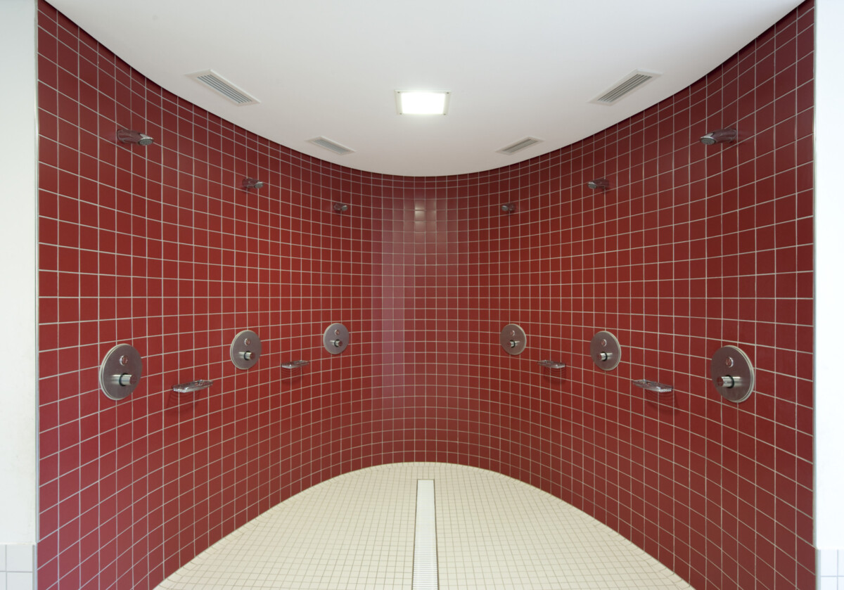 Für die Sanierung der Schwimmoper wurden 800 qm Hydropanel Ausbauplatten in verschiedenen Einbausituationen verwendet: Als großflächige Vorsatzschale in beiden großen Schwimmbereichen, als Bekleidung der abgehängten Decken in der dazwischen liegenden Erschließungszone und den Duschräumen, im Anschlussbereich der Tribünen an die Fensterfront.
