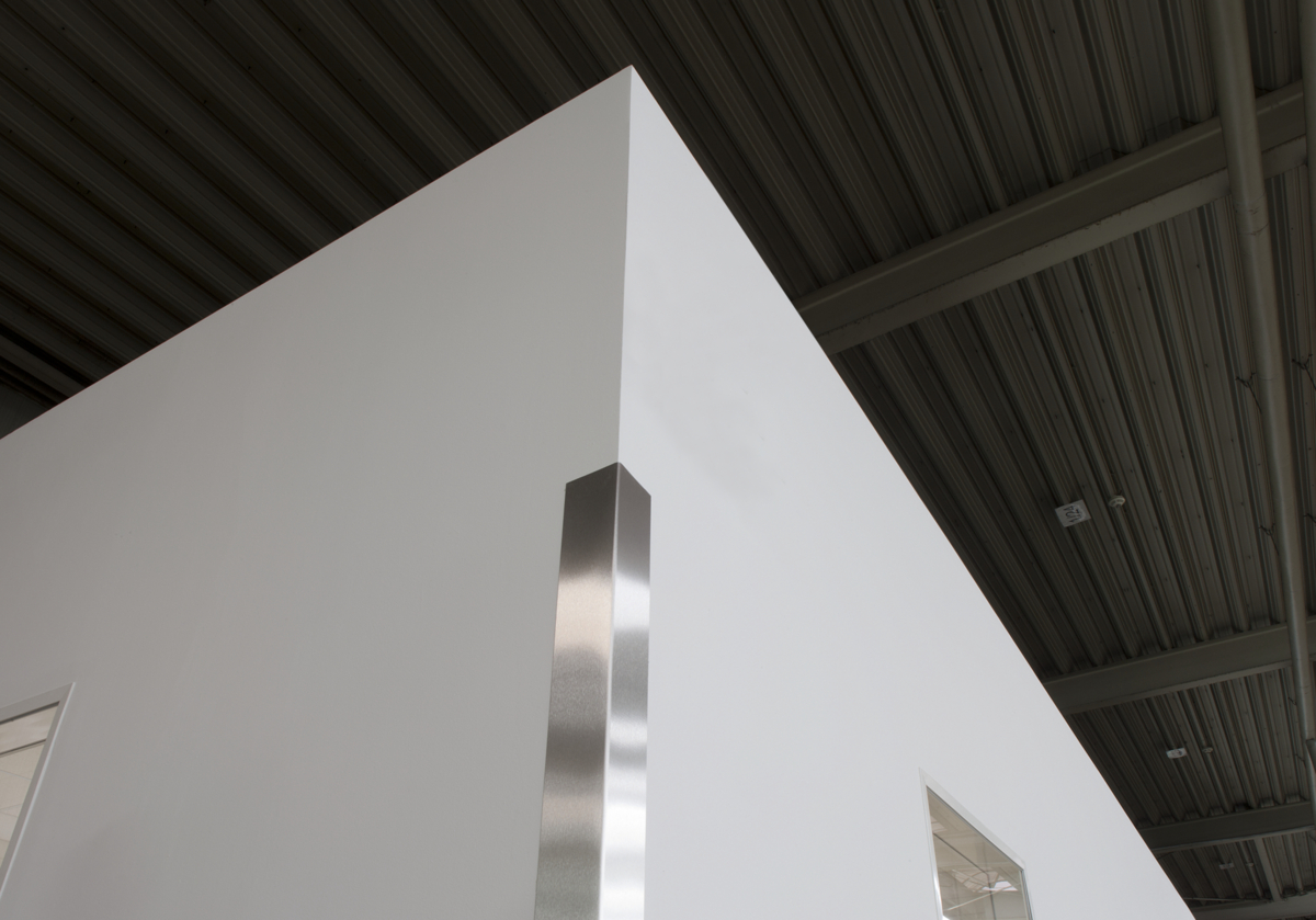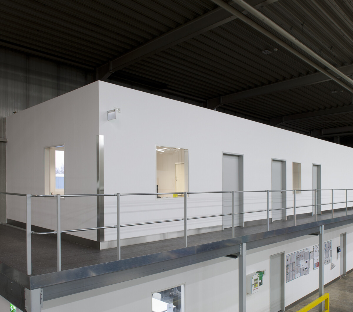 Die Niederlassung des in über 70 Ländern agierenden Unternehmens Wilo SE im ostwestfälischen Minden ist auf den Entwurf und die Fertigung von Abwasserpumpschächten spezialisiert. In der etwa 2.000 qm großen Halle bestand genügend Platz, um Arbeitsplätze für Entwickler zu integrieren. Wichtige Voraussetzung war, die Büros rasch und wirtschaftlich zu realisieren und sie akustisch von der lärmintensiven Herstellung zu trennen. Diese zentrale Aufgabe erfüllte die Mehrzweck-Gipsplatte LaPlura, eingesetzt in Siniat Einfachständerwänden und dem Siniat Raumsystem.